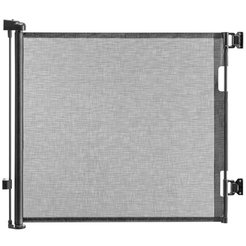 DIKOTS Dual Lock Black Retractable Stair Gates for baby & Pet - Extends to 140 cm wide, 86 cm tall gate - Retractable Stair Gates for Dogs, black baby