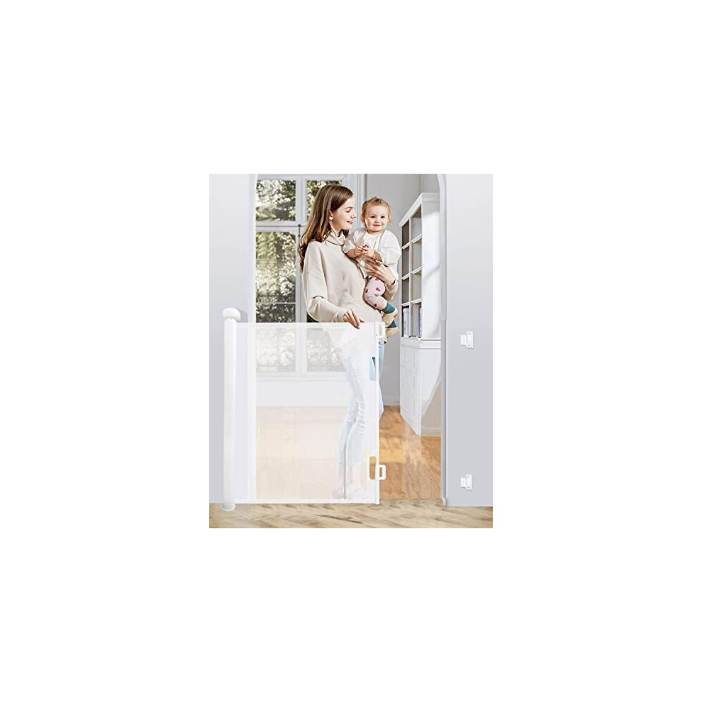 Retractable Stair Gate for Baby and Dogs,Baby Gate with Safety Lock,Extra Wide Baby Safety Gate for Large Opening Extra Large Pet Gates for Dogs Cats