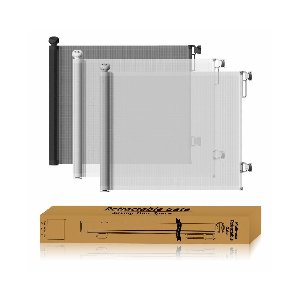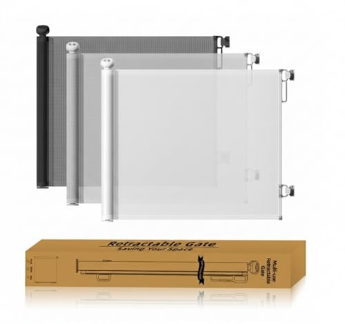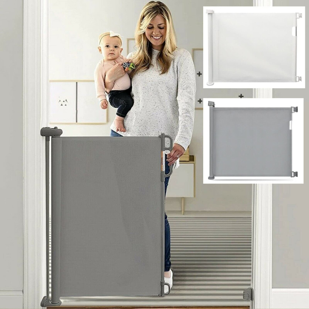 Retractable Baby Gate 87cm x 130 cm Stair Safety Gate Roll for Babies and Pets, dogs, Extendable Barrier Gates (Grey)