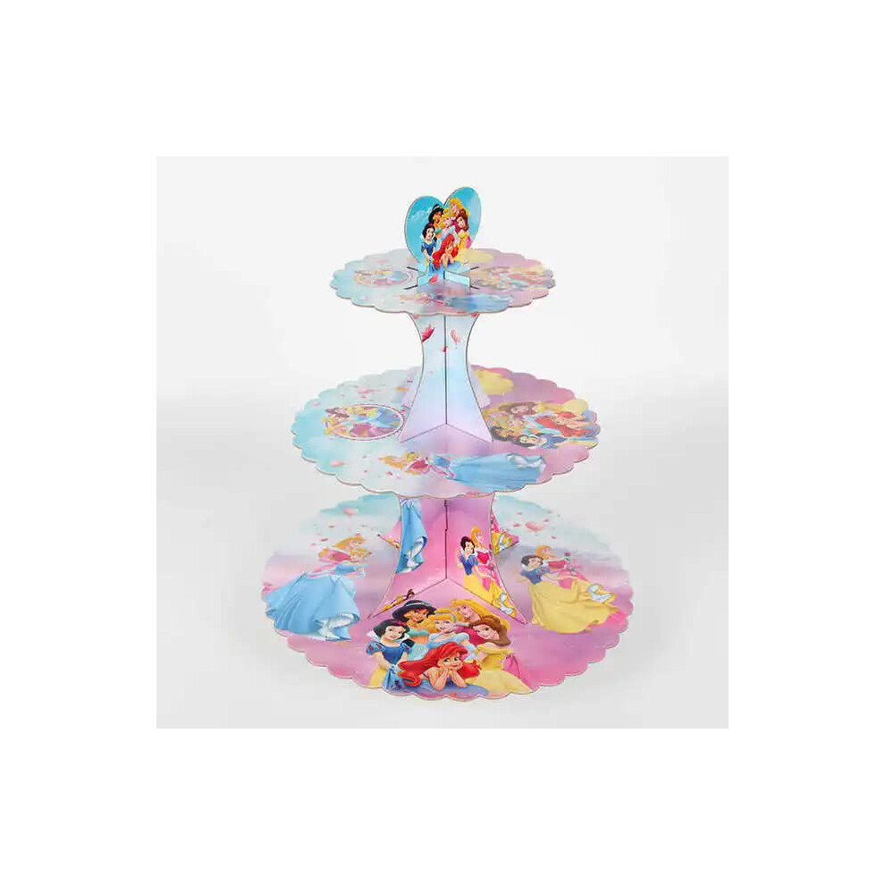 (1pcs cake stand) Pink Princess Birthday Party Decoration Disposable Dinnerware Girl Tablecloth Plate Stamp Bracelet for Kids Baby Shower Supplie