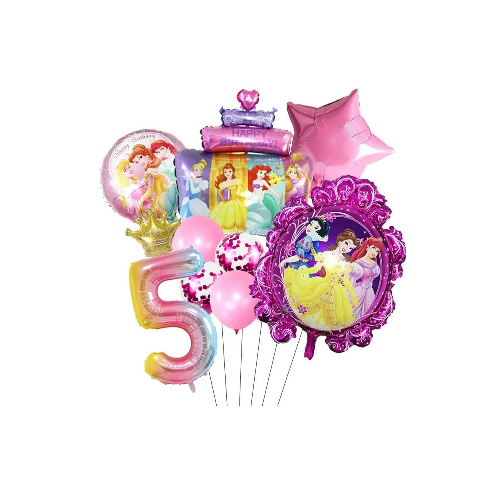 (18pcs balloon) Pink Princess Birthday Party Decoration Disposable Dinnerware Girl Tablecloth Plate Stamp Bracelet for Kids Baby Shower Supplie