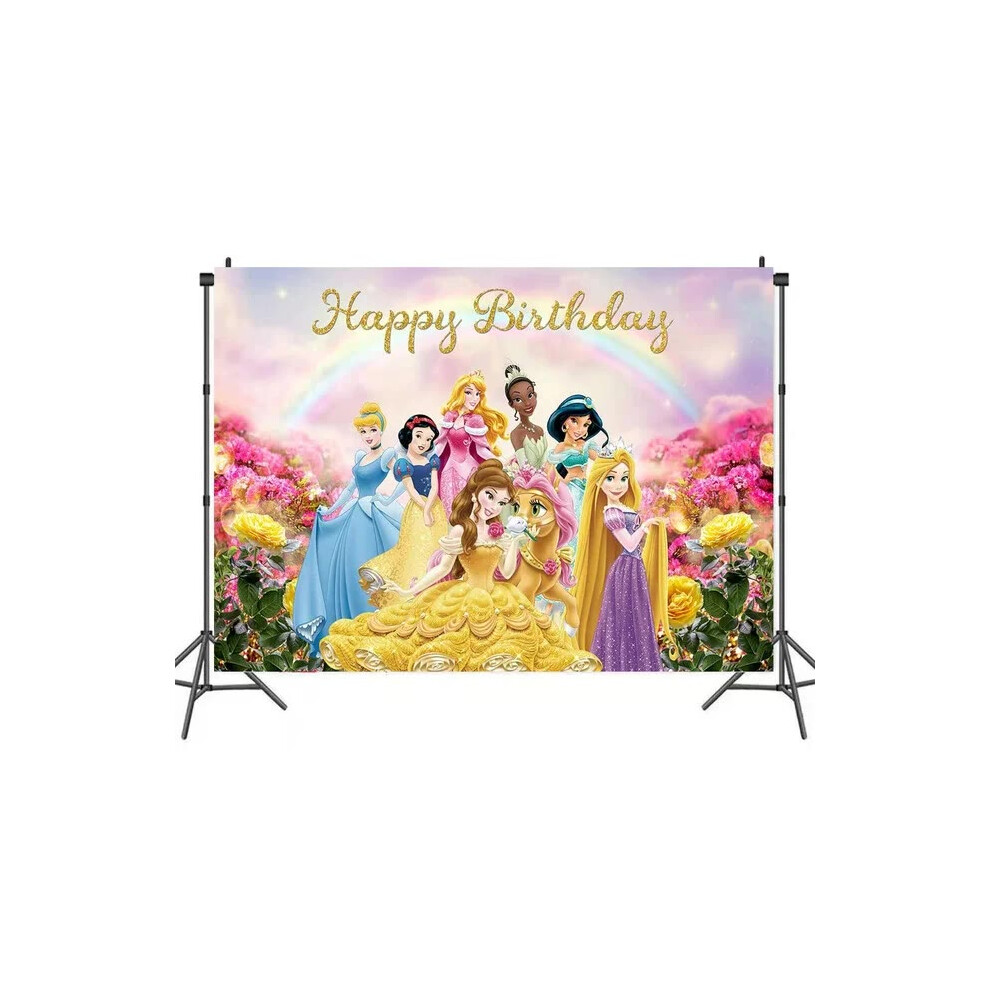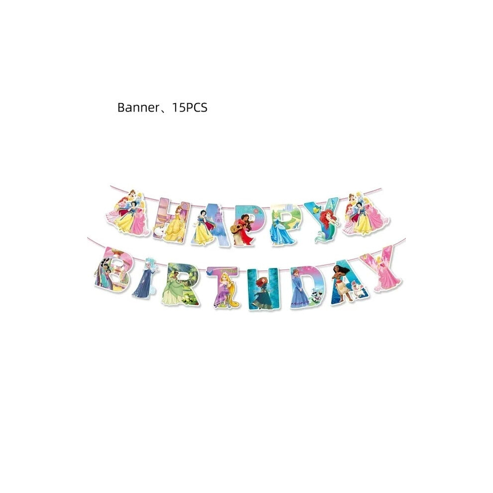 (banner) Pink Princess Birthday Party Decoration Disposable Dinnerware Girl Tablecloth Plate Stamp Bracelet for Kids Baby Shower Supplie