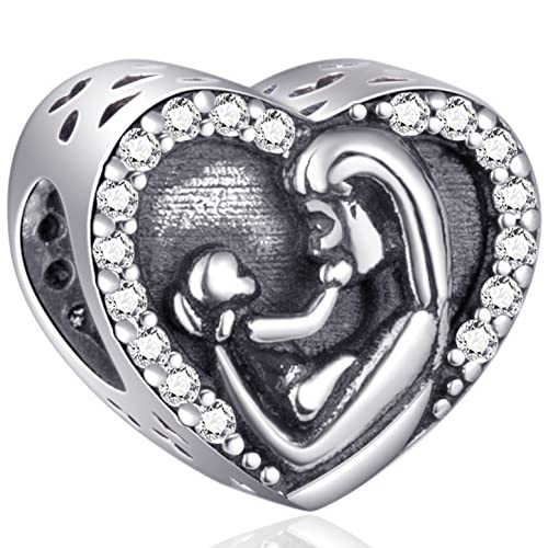 Mum and Baby Charms fit Pandora My First Mothers Day Bracelet, 925 Sterling Silver Mother Child Heart Birthday Beads with CZ, Gift for Daughter/Son/Best Mom/Boy/Girl