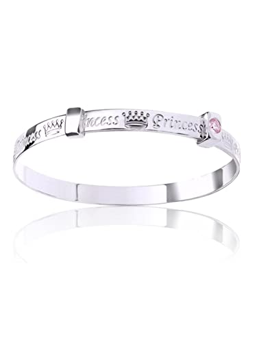 Designer Inspirations Boutique 'PRINCESS' 5MM Wide Expanding/Expandable/Adjustable Bangle Bracelet for Baby/Child/Children/Girl - 925 Sterling Silver - Size: BABY (Small)