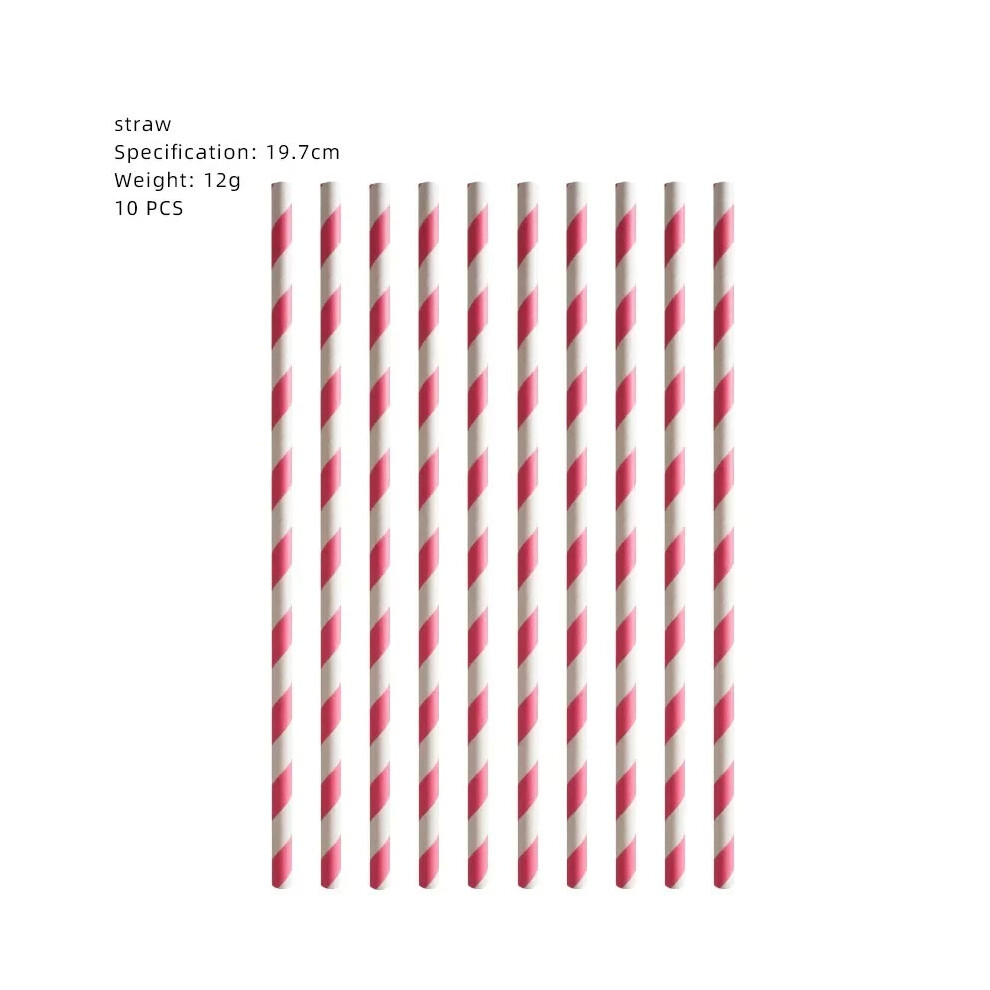 (10pcs straw) Pink Princess Birthday Party Decoration Disposable Dinnerware Girl Tablecloth Plate Stamp Bracelet for Kids Baby Shower Supplie