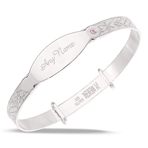 Dolce Valentina Personalised Newborn Baby Girl Bracelet - Sterling Silver Bangle with Pink Stone, Christening and Birthday Gift, Baby Shower Keepsake