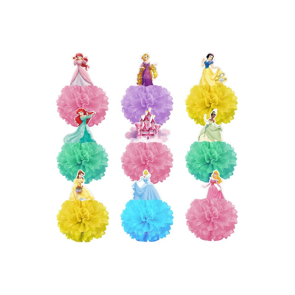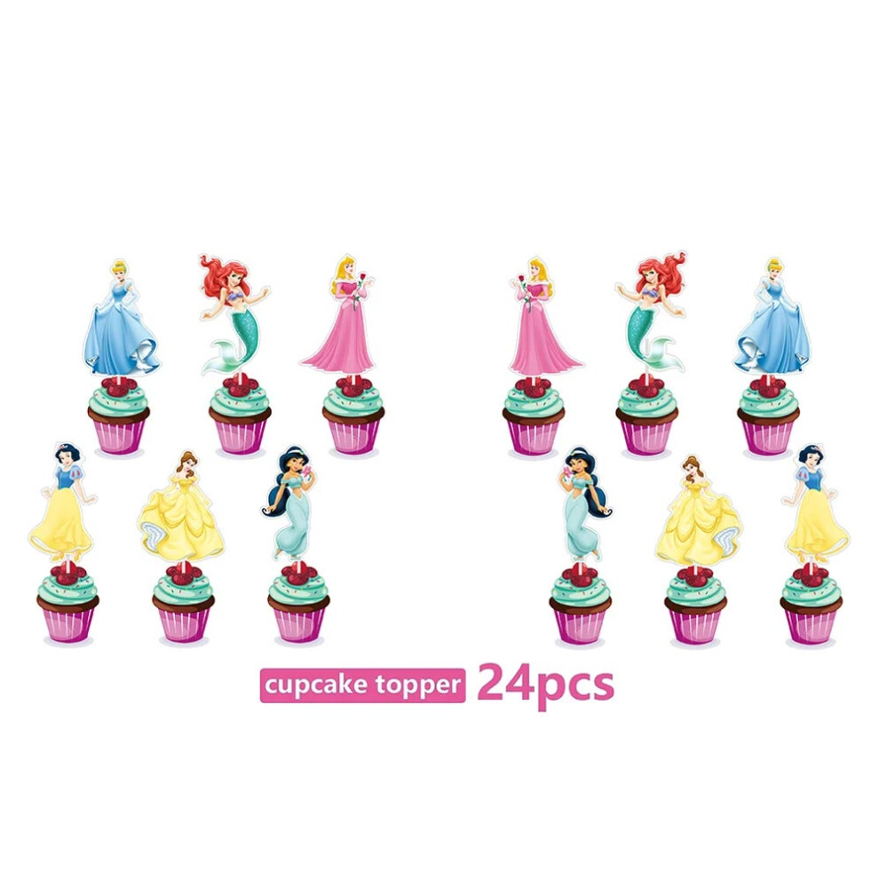 (24pcs cake topper) Pink Princess Birthday Party Decoration Disposable Dinnerware Girl Tablecloth Plate Stamp Bracelet for Kids Baby Shower Supplie