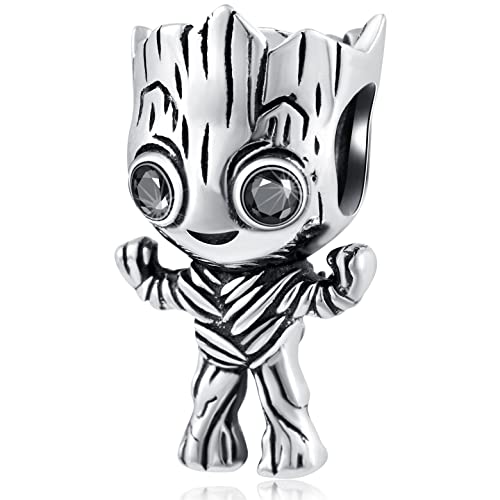 Tree Man Groot Monster Charms with Black CZ Eyes, fits Pandora Galaxy Bracelet, 925 Sterling Silver I am Baby Groot Beads, Gifts for Daughter/Son/Best Friend/Mother Boy/Girl