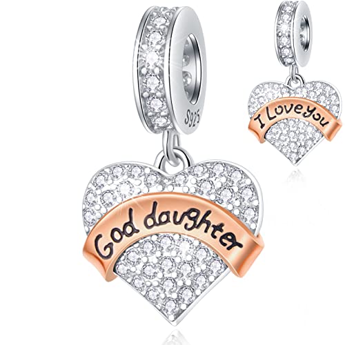 Goddaughter Dangle Charms fits Pandora DIY Moment Bracelet, 925 Sterling Silver I Love You God Daughter Beads, Pave Heart Sparkling Clear CZ Pendant, Gifts for Christmas/Birthday/Baby Girl