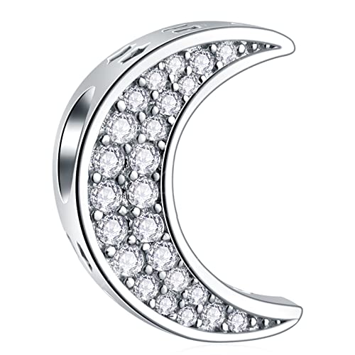Sparkling Crescent Moon Charm, Fit Pandora Women Bracelet, 925 Sterling Silver I Love You to the Moon and Back Bead, Gift for Boy/Girl/Eid Ramadan/Mum/Baby