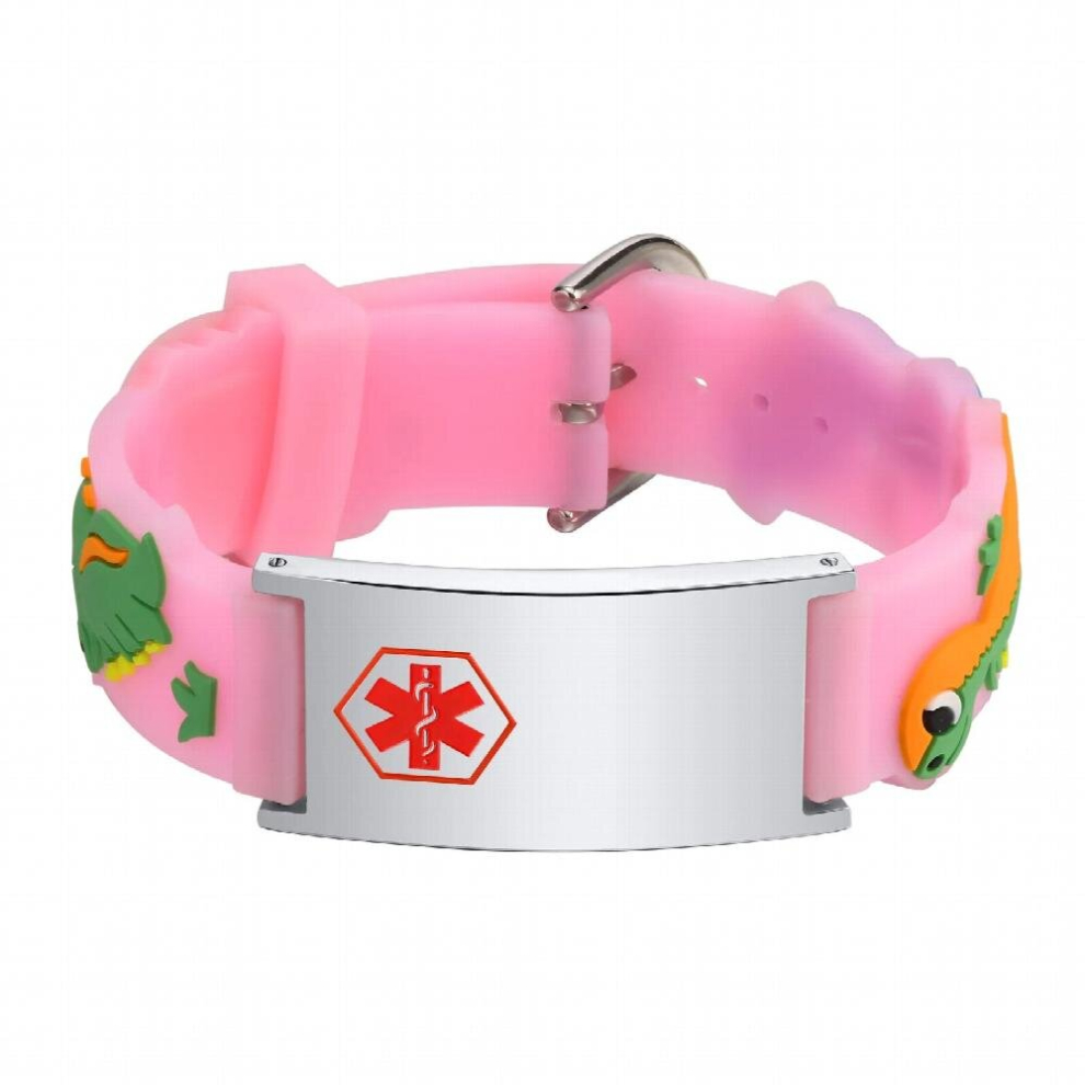 Baby Dinosaurs Medical Alert ID Bracelet , Adjsutable Silicone Bracelet, Food Allergy Engraved for Kids Girl Boy