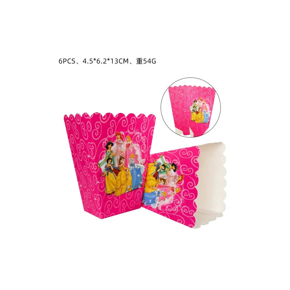 (6pcs popcorn box) Pink Princess Birthday Party Decoration Disposable Dinnerware Girl Tablecloth Plate Stamp Bracelet for Kids Baby Shower Supplie