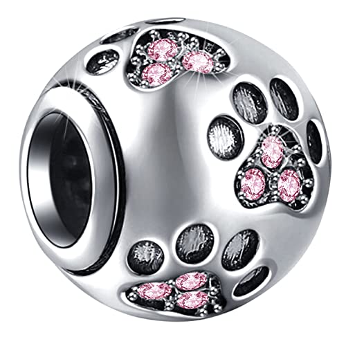 October Birthstone Dog Paw Print Charms fit Pandora Valentines Day Bracelet, 925 Sterling Silver Pet Pawprint Beads with Birth Stone Crystal, Birthday Gifts for Wife/Baby Girl/Wedding