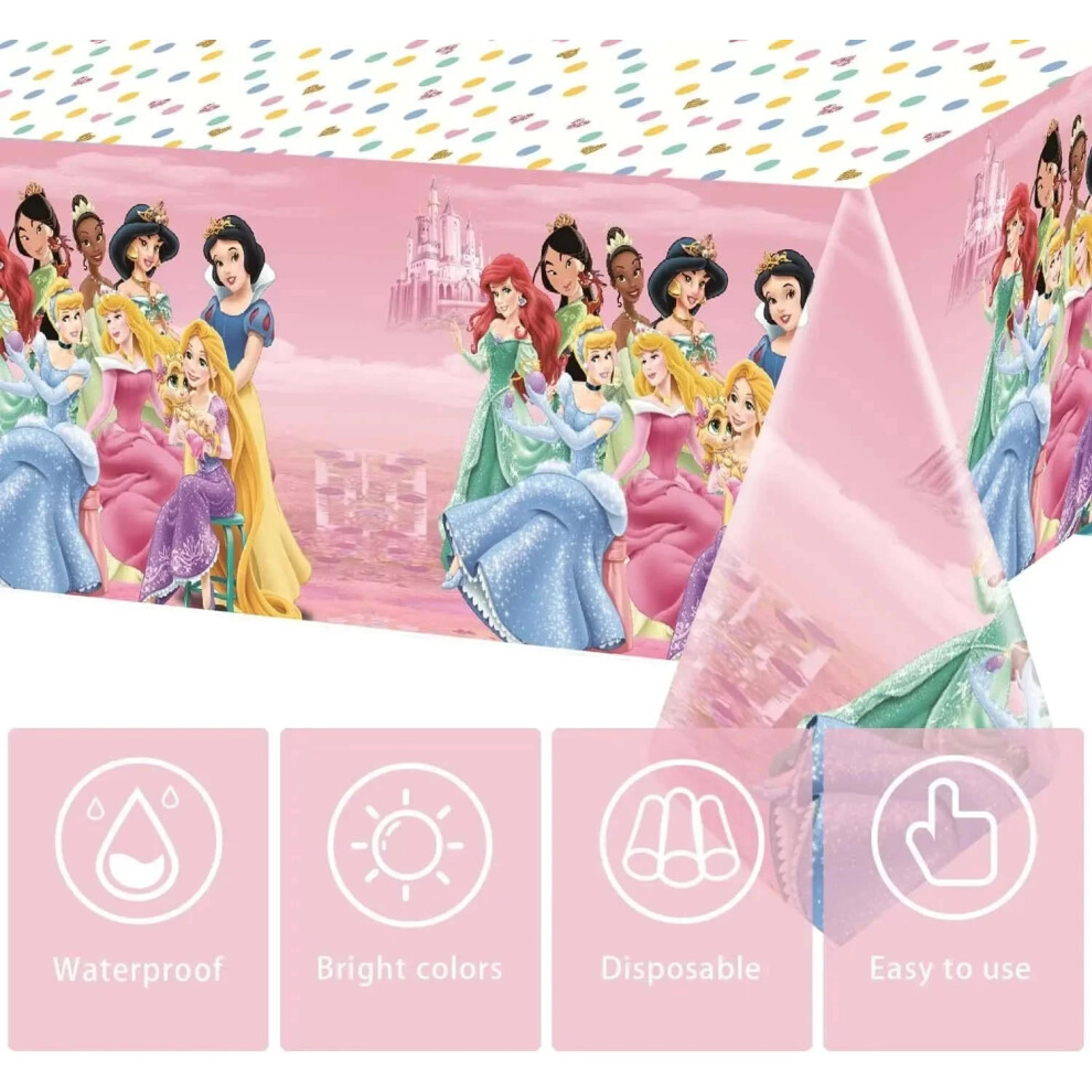 (1pcs tablecloth) Pink Princess Birthday Party Decoration Disposable Dinnerware Girl Tablecloth Plate Stamp Bracelet for Kids Baby Shower Supplie