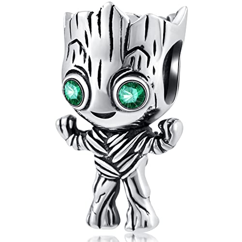 Tree Man Groot Monster Charms with Green CZ Eyes, fits Pandora Galaxy Guardians Bracelet, 925 Sterling Silver I am Baby Groot Beads, Gifts for Daughter/Son/Best Mum/Dad Boy/Girl