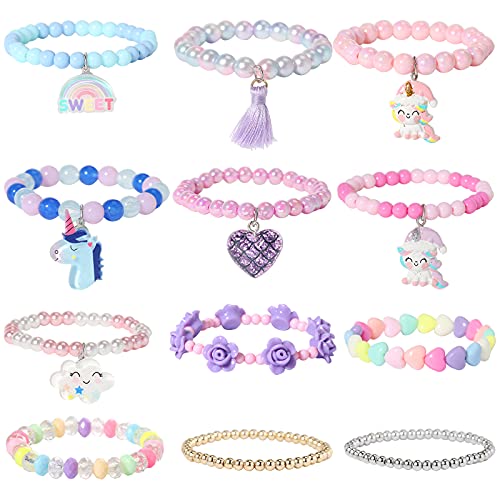 Pinkgarden Beaded Bracelets for Kids Little Girl, 12 Pcs Unicorn Friendship Heart Flower Cloud Tassel Bracelets for Baby Girls Teen Bracelet Princess Party Favors Birthday Gift