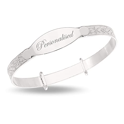 DV DOLCE VALENTINA Children's Personalised Silver Bangle, Baby Girl Bangle, Bracelet For Baptism, Christening, Baby Shower, Birthday For Newborn 0-1 yrs