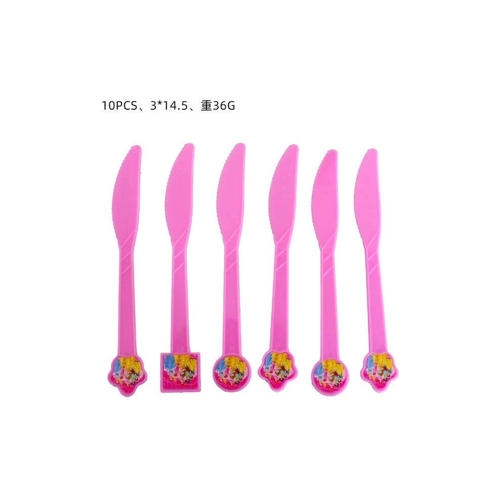 (10pcs knife) Pink Princess Birthday Party Decoration Disposable Dinnerware Girl Tablecloth Plate Stamp Bracelet for Kids Baby Shower Supplie