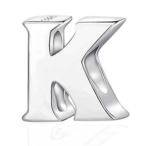 CRISNATA Letter K Charm fits Pandora Snake Bracelet, Polished 925 Sterling Silver Initial K Alphabet Bead Charms, Gift for Boy/Baby Girl/Birthday/King