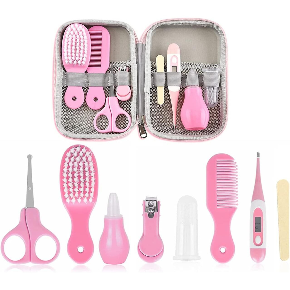 Professional 8 Piece Baby Care Kit Newborn Grooming Kit Baby Grooming Kit Baby Nail Care Set Baby Grooming Brush Kit (Pink
