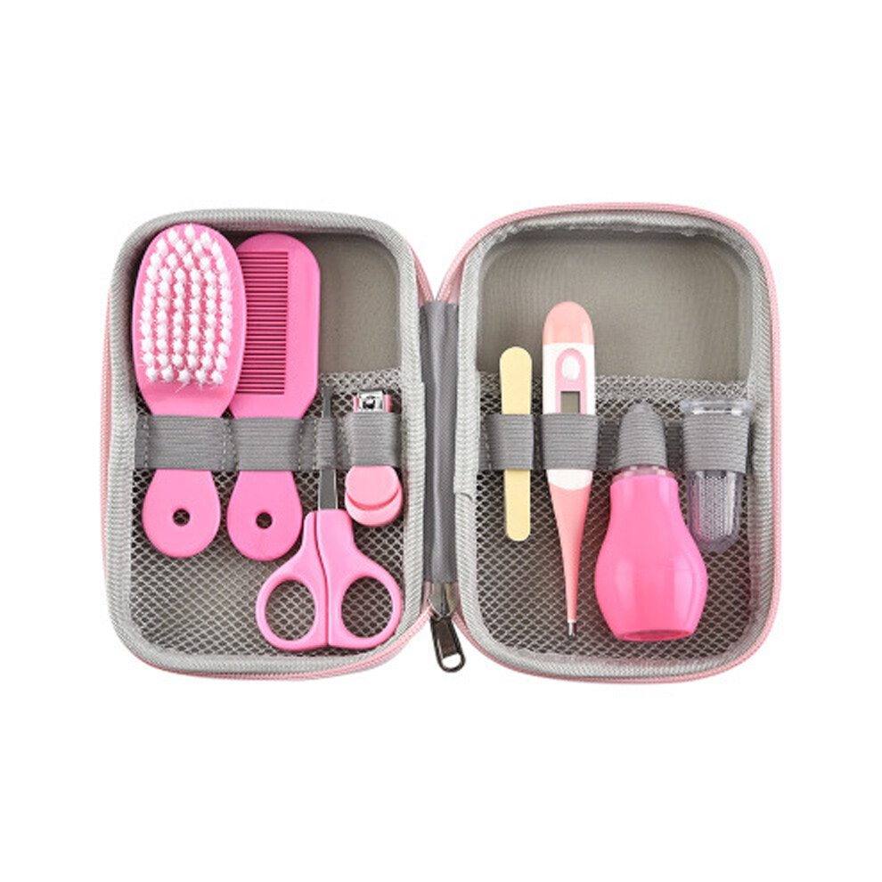 Professional 8 Piece Baby Care Kit Newborn Grooming Kit Baby Grooming Kit Baby Nail Care Set Baby Grooming Brush Kit (Pink