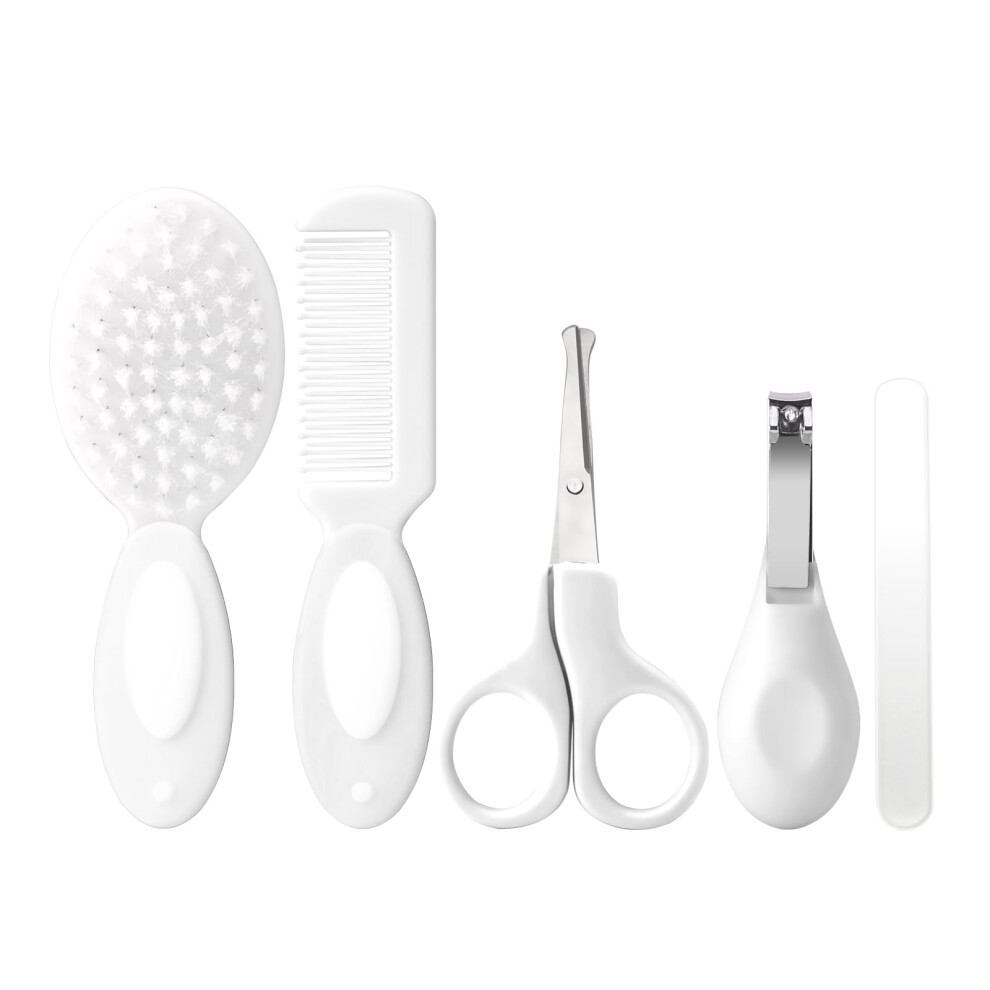 Baby Grooming Kit Newborn,Infant Safety Care Set with Hair Brush Comb Nail Clipper, Baby Essentials for Newborn,5 Pcs, Write