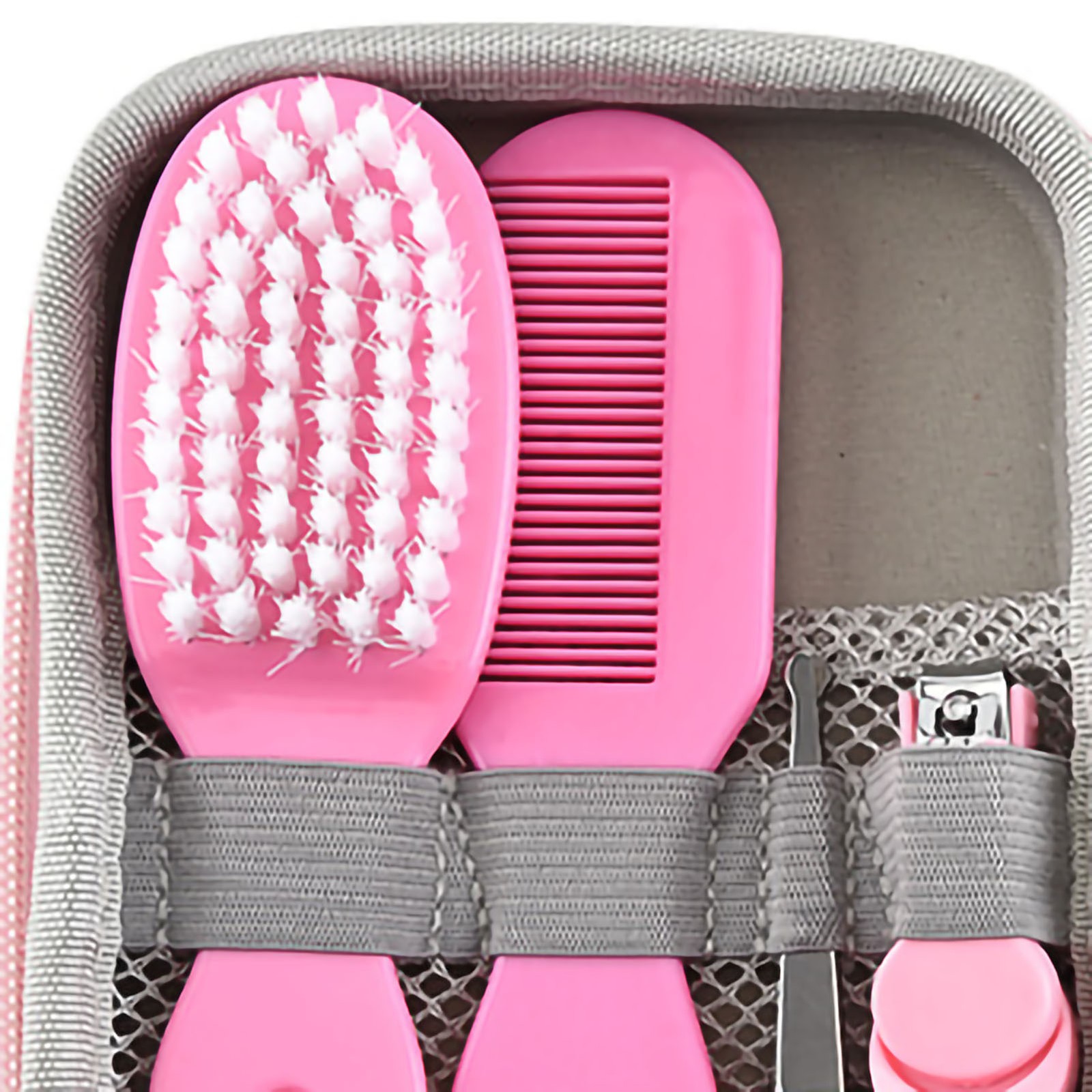 (Pink)Baby Grooming Kit With Hair Brush Nail Clipper Nose Cleaner Finger ~