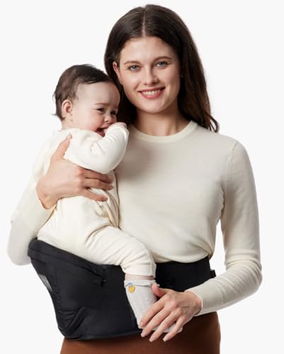 Momcozy CPC-Certified Baby Hip Carrier - Adjustable Waistband with Original 3D Belly Protector, Ergonomic Carrier with Various Pockets for Newborns & Toddlers up to 45lbs (Black, Large)