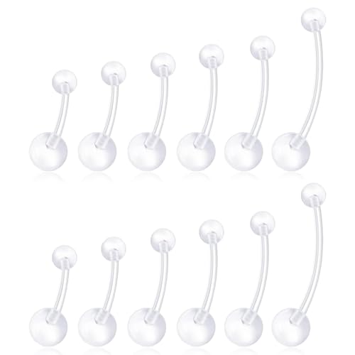 12Pcs Maternity Belly Ring Kit, Transparent Acrylic Pregnancy Belly Bars 14G with 6 Lengths (10/12/14/16/25/32mm), Flexible Plastic Balls, Body Piercing Bars for Comfortable Baby Bump Jewelry