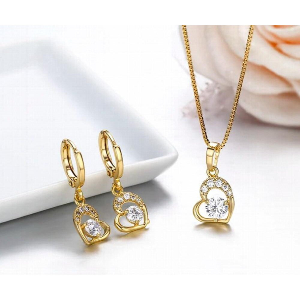 Peach Heart Cubic Zirconia CZ Drop Hoop Earrings Necklaces & Pendants Jewelry Sets Set For Women Baby Girls Kids Jewellery