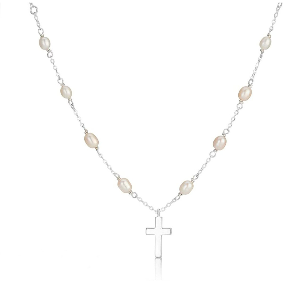 First Communion Freshwater Pearl & Cross Rosary Necklace for Girl's - Newborn Jewellery Baby Christening gift