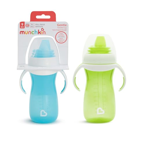Munchkin Gentle Transition Baby Bottles | Babies and Toddler Bottle with Handles and Lids| Kids Water Bottle with Spout |Non Spill | Baby Led Weaning | for 9+ Months| 2 pack | 10oz/296ml | Green/Blue