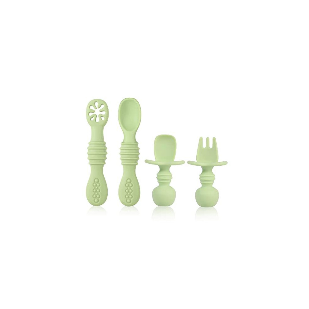 4Pcs Silicone Baby Spoons Self Feeding 6+ Months, BPA Free Baby Led Weaning Spoo