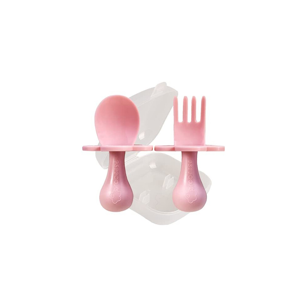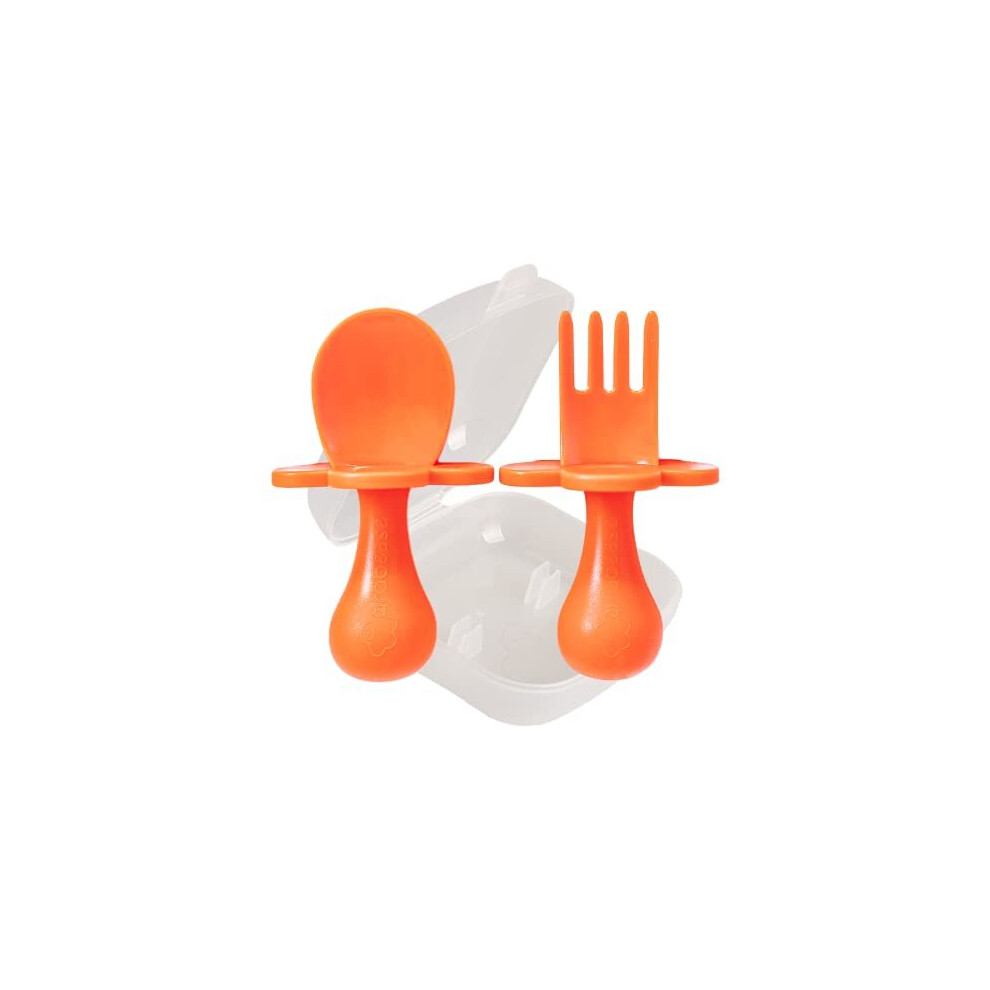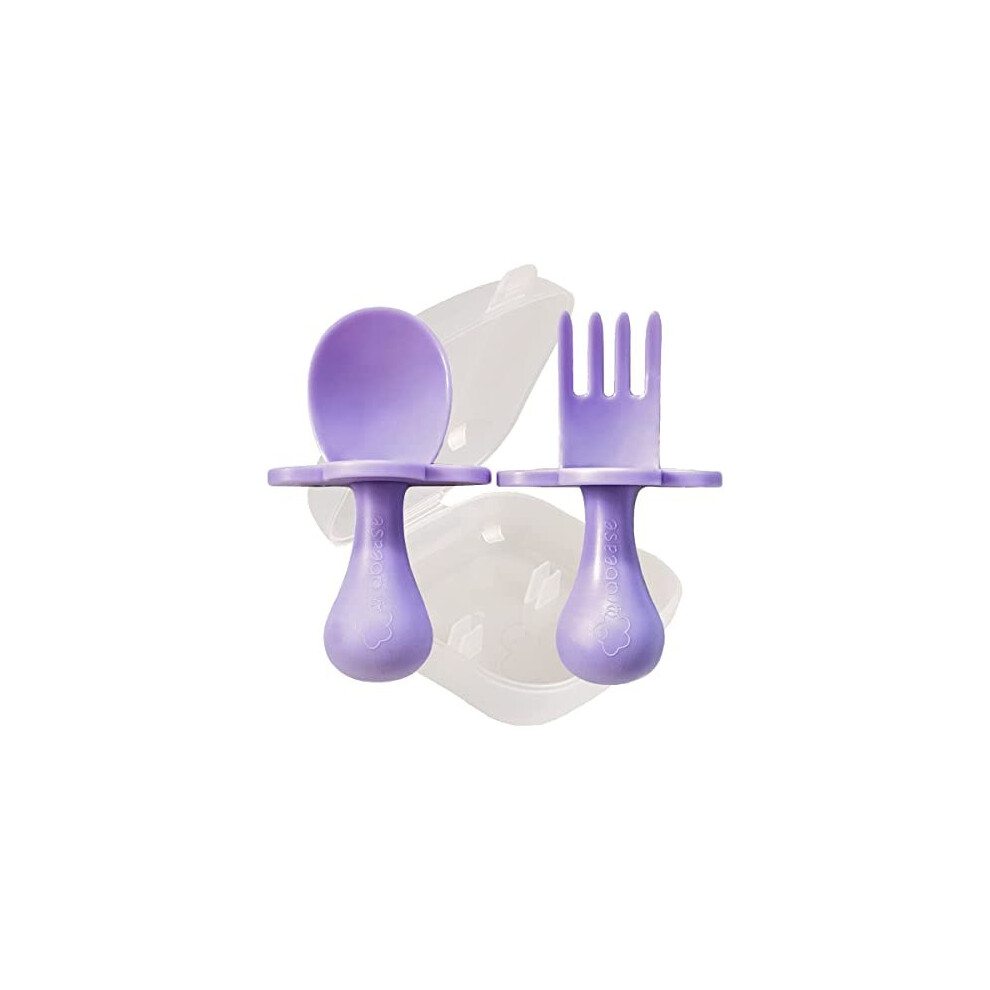 Grabease Baby and Toddler Self-Feeding Utensils â Spoon and Fork Set for Baby-Led Weaning â Made of Non-Toxic Plastic â Featuring Prot