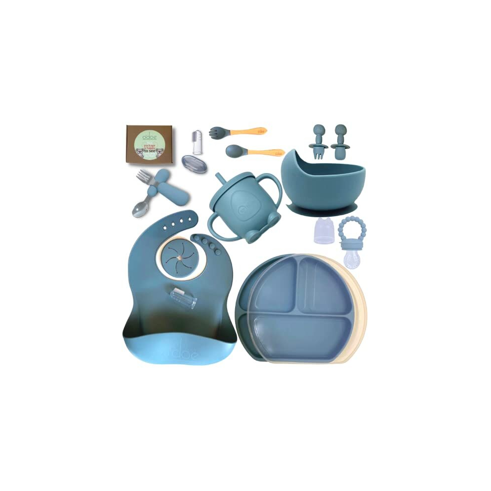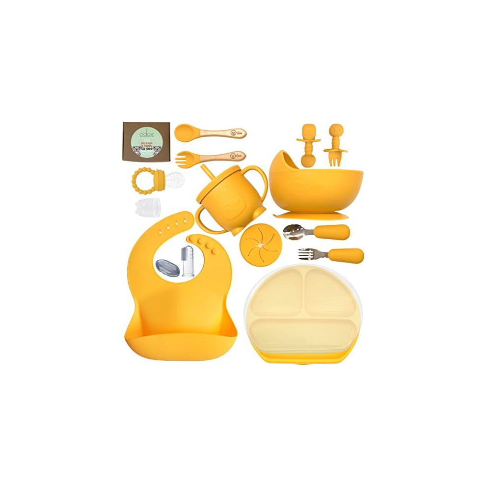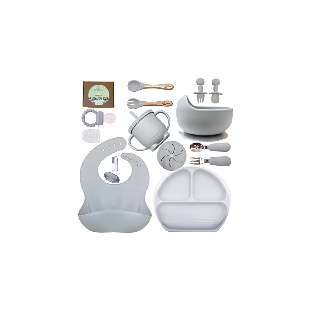 Baby Led Weaning Feeding Supplies for Toddlers, O'doe Baby Feeding Set (17 Pcs) | Suction Silicone Baby Bowl Self Eating Utensils with Fruit Feeder,