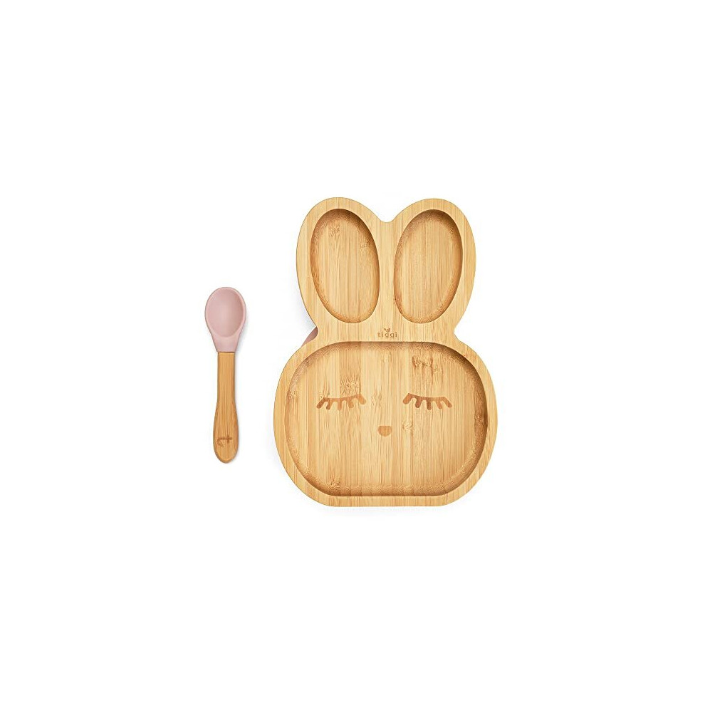 Tiggi Bamboo Baby Plate and Spoon Set with Stay Put Suction Cup for Kids and Toddlers | Perfect for Baby Led Weaning (Rabbit, Pink)