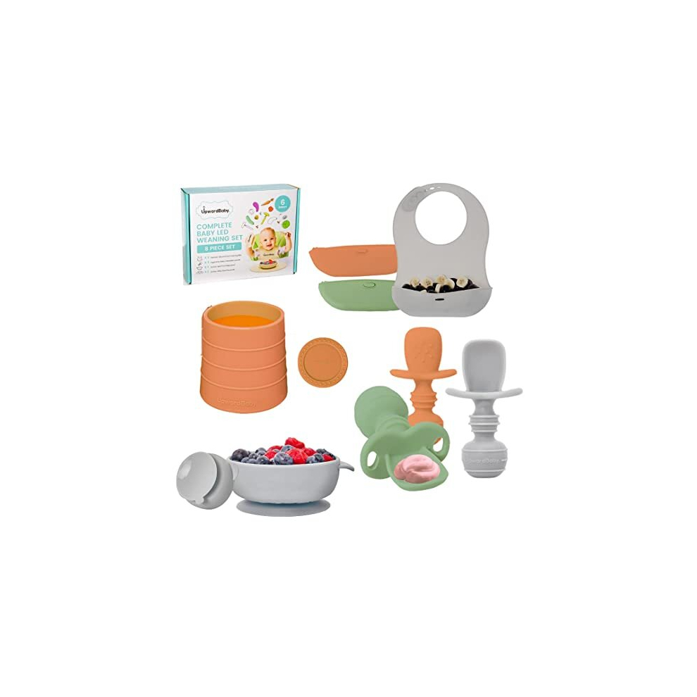 Upward Baby Led Weaning Supplies - Suction Plates for Baby - Spoons Self Feeding 6 months Suction Bowls, Silicone Cup & Plates, Toddler Plates & Bowls