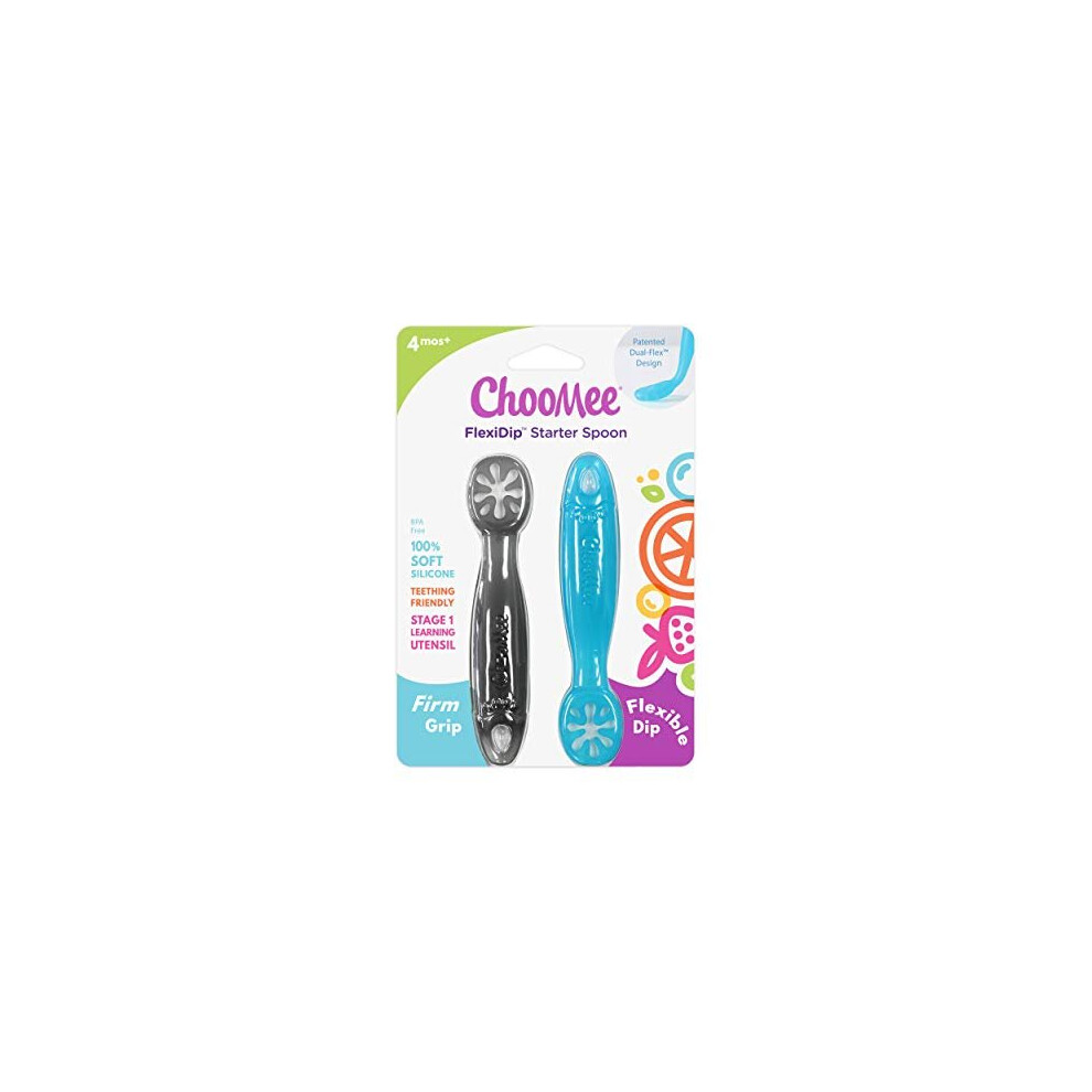 Baby Spoons, FlexiDip| Baby Led Weaning | Dip and Catch Purees | Pediatrician Approved Stage One Learning Utensil, 100% Silicone Chew Friendly