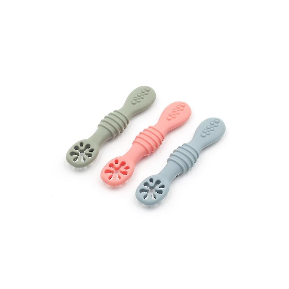 3pcs Silicone Baby Spoons, First Stage Toddler Utensils Baby Led Weaning Spoons Baby Chew Spoon Training Spoon