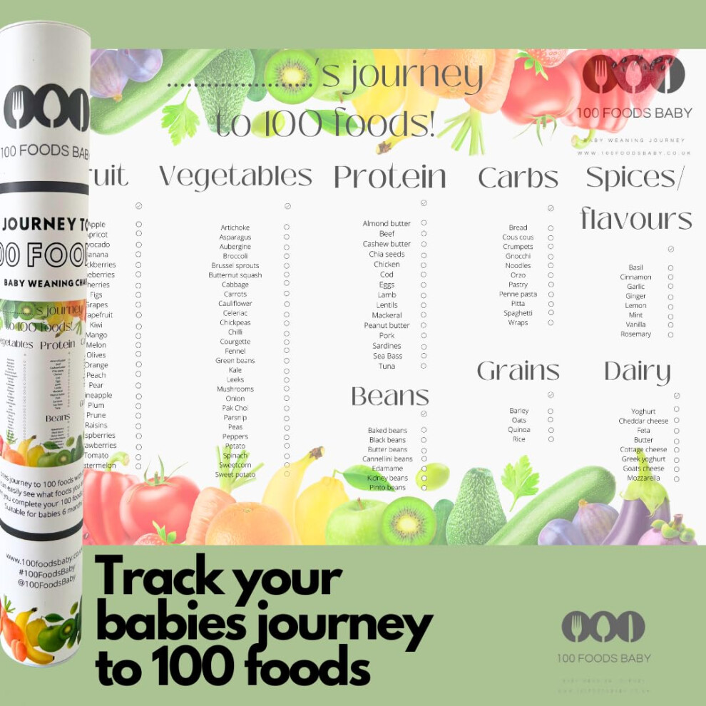 Nuzzle & Nest Baby Weaning Chart (A3), Baby & Toddler First Foods Checklist, Baby-Led Weaning, Allergen Tracker (Standard)