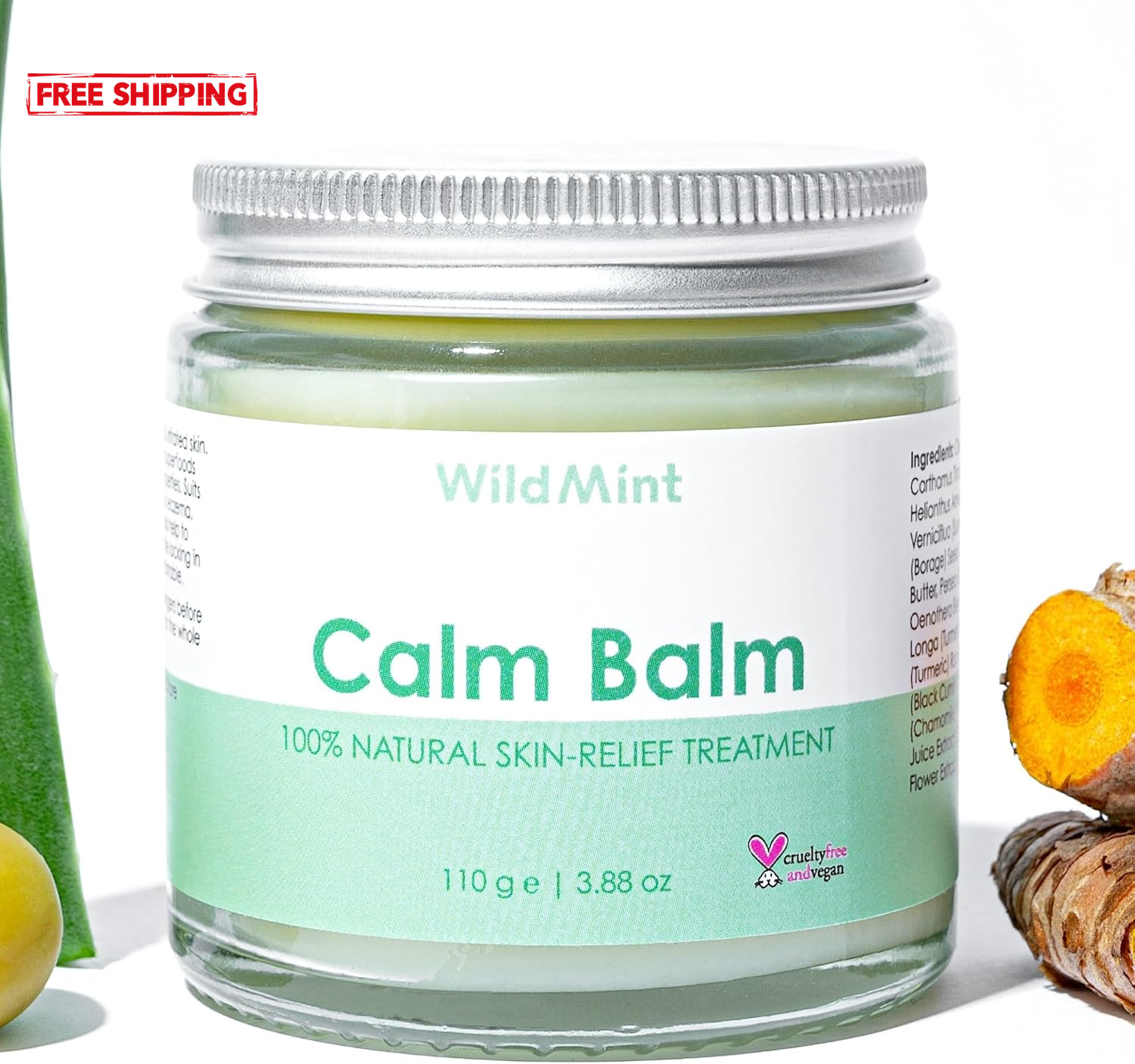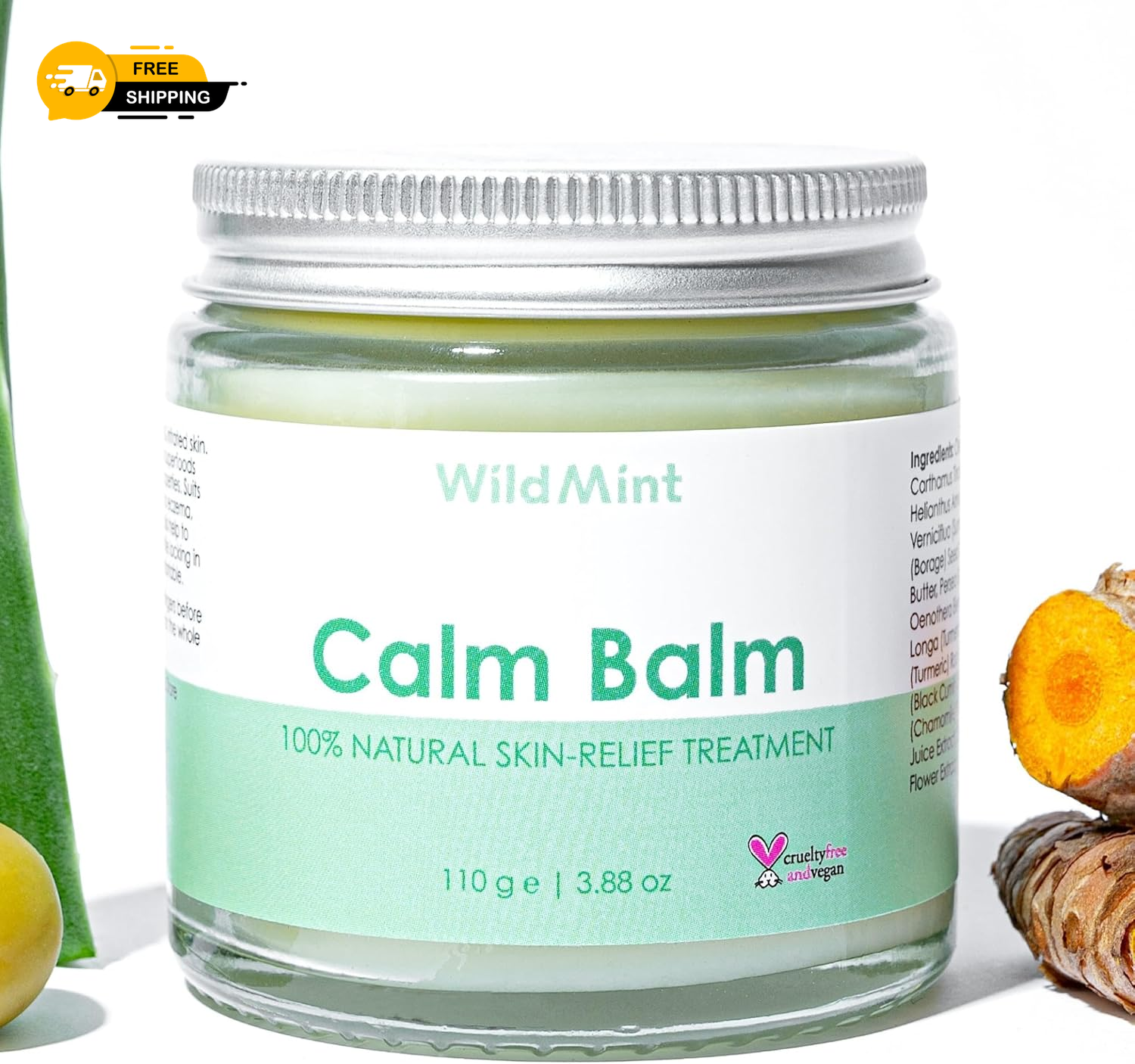 WildMint Calm Balm 100% Natural Relief Treatment for Sore, Itchy & Dry Skin | Intensive Shea Butter Moisturiser Suitable Baby with Sensitive