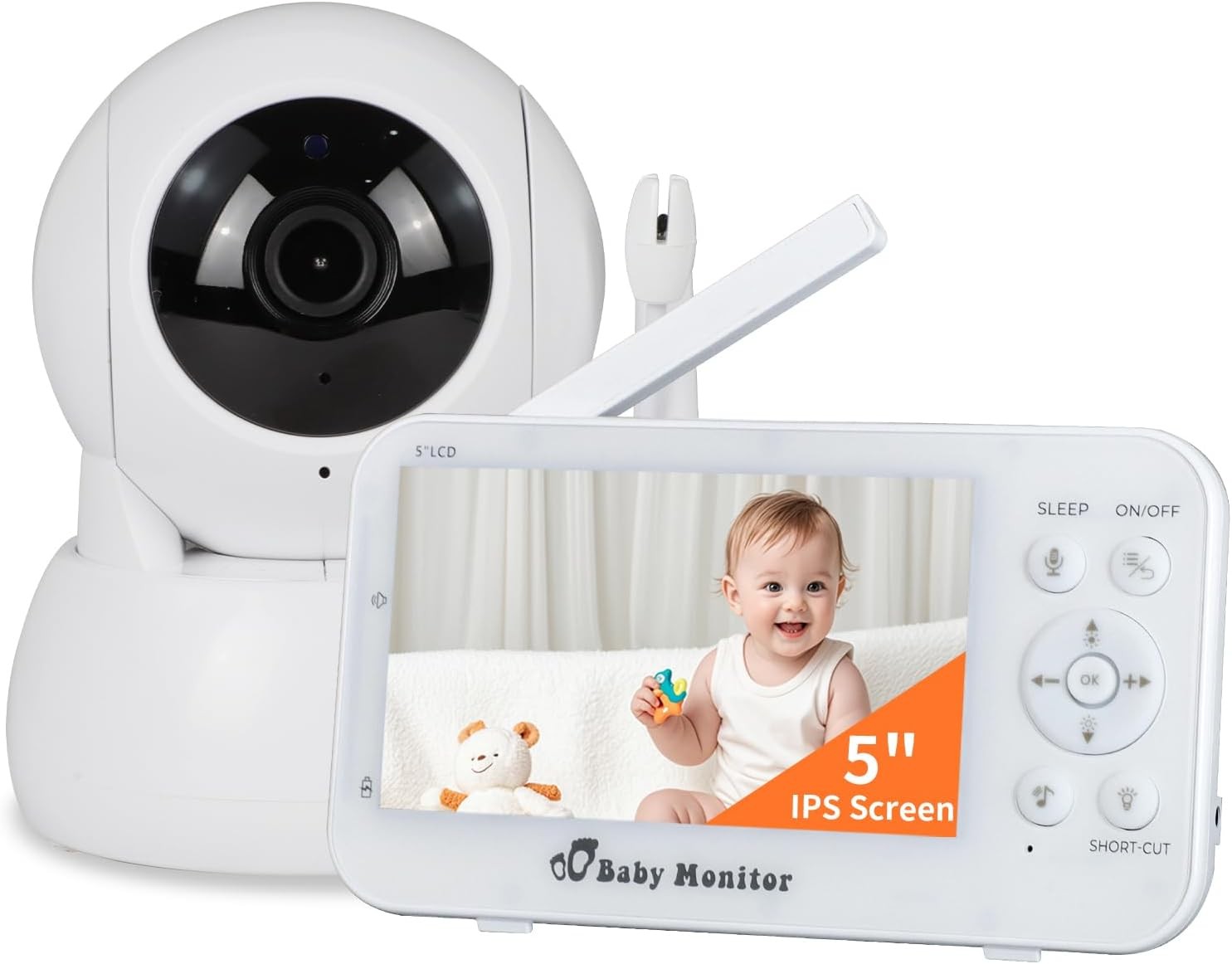 ieGeek 2K Baby Monitor with Camera and Night Vision, Video Baby Camera with 5" Screen, Two-Way Talk, Cry & Motion Detection, Temper& Humidity Sensor, PTZ, Remote Control via Screen and Free APP