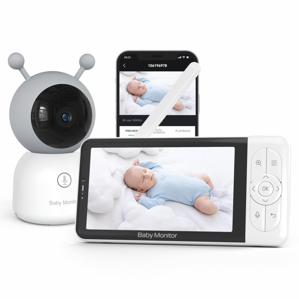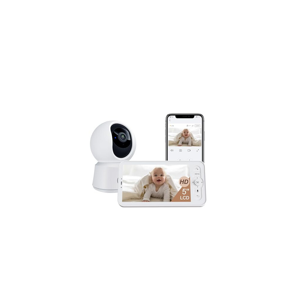 2K Wifi Smart Video Baby Monitor with Camera, Phone App & 5'' Screen Control, Mo