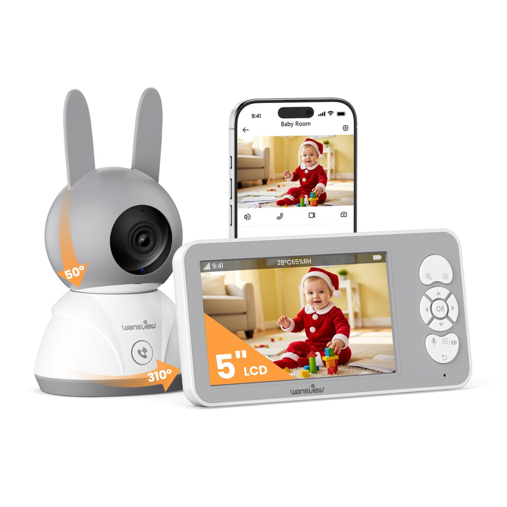 wansview Video Baby Monitor Camera, Dual-Band WiFi Baby Monitor with Camera and Night Vision, APP & 5" Battery Screen Control, Human&Sound Detection,