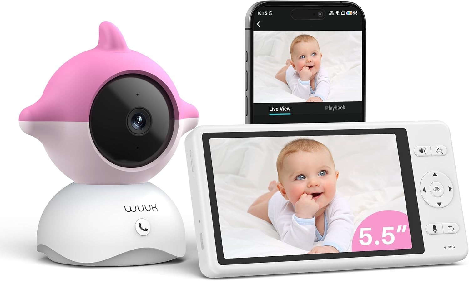 WUUK 2K Baby Monitor Camera with APP, 5.5" Display 360° PTZ Color 1 Pack
