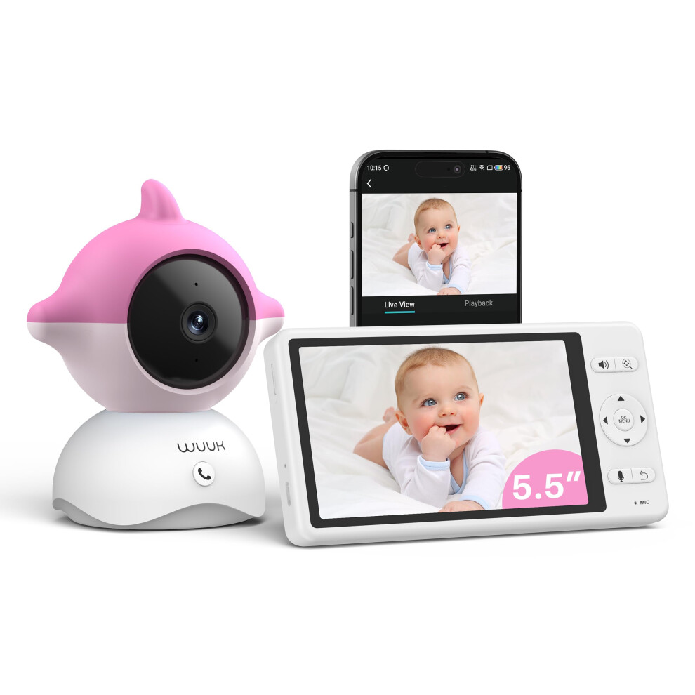 WUUK 2K Baby Monitor Camera with APP, 5.5" Display with 360? PTZ Color Display Video Baby Monitor, 135? Wide Angle, 3700mAh Battery, Ultra-clear Night