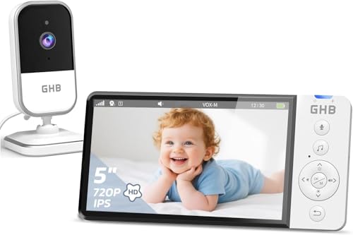 GHB Baby Monitor with Camera and Night Vision 5'' 720P HD Video Baby Monitor Camera IPS Screen, VOX Mode, 2-Way Audio, Temperature Alert, 8 Lullabies, No App or Wi-Fi Needed