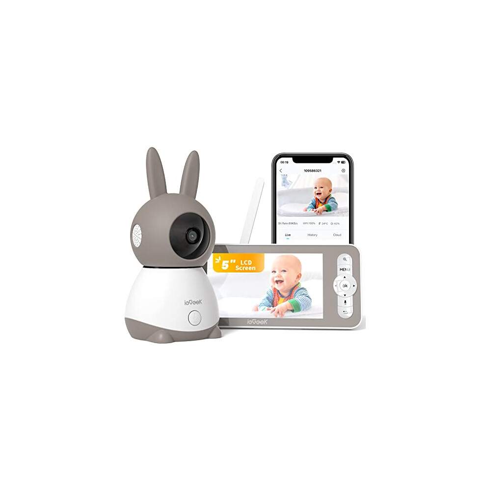 ieGeek 5" Screen Baby Monitor with Camera and Night Vision, 1080P Smart Video Baby Camera, Baby Monitor Long Range with Free APP, Motion&Sound Detect