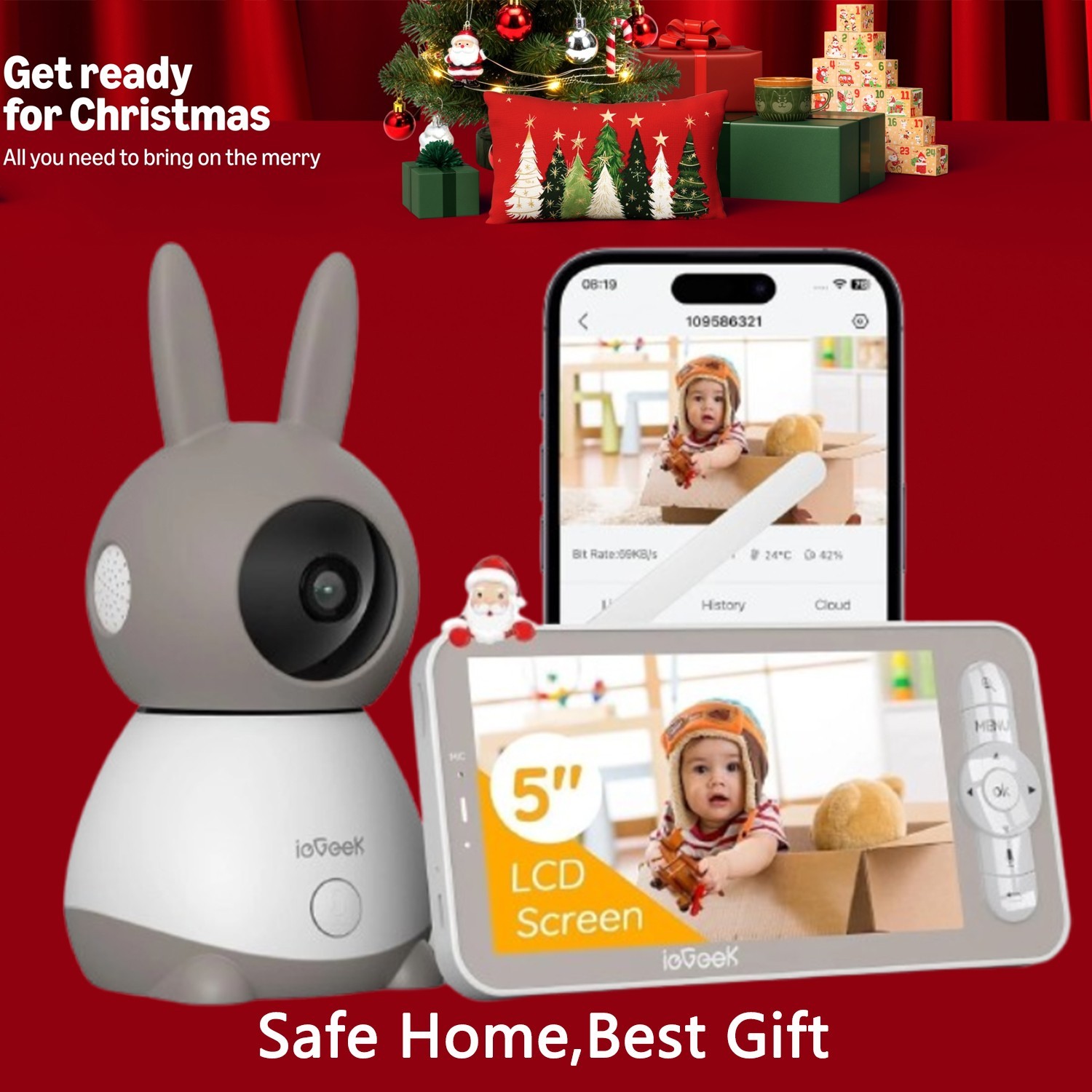 ieGeek 2K WiFi Baby Monitor with Two Cameras, Phone App & 5" Split-Screen Control, Smart Video Camera, Night Vision, Automatic Tracking, PTZ, Crying Detection, Temperature/Humidity Sensor, Baby Gift