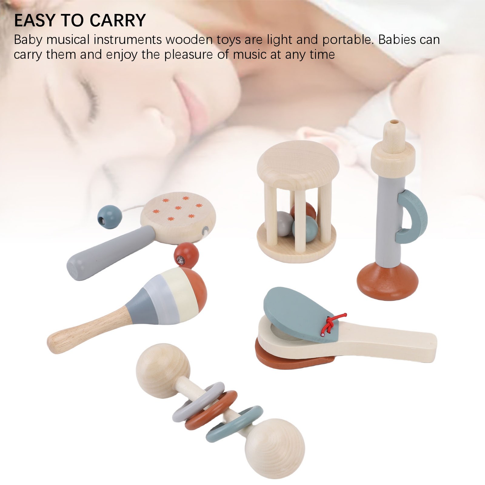 Generic Safe and Practical Baby Musical Instruments Toys Set for Babies' Auditory Development, Easy to Carry Toddlers Percussion Instruments Set for Music Education, Suitable for Babies, White Ash